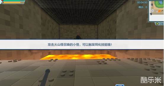 火山怪会召唤小怪协助火山怪攻击你,你可以利用跳跃能力跳到小怪身边不使用武器攻击小怪触发同化效果让小怪攻击火山怪。