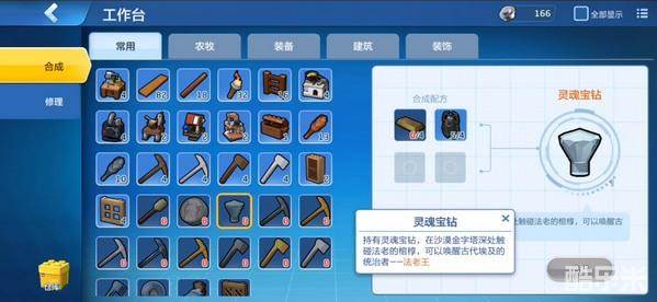 在之前的版本,法老的召唤道具需要在金字塔的特殊工作台制作。但是现在的版本,我们还是可以通过工作台制作“灵魂宝钻”。