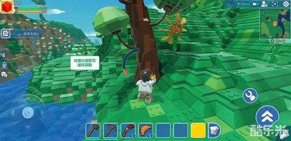 生存模式几乎所有的材料都要自行收集,例如:石块、木块、种植物。那怎么获取呢?只要对准相应元素方块长按即可破坏该物品,然后拾取即可。