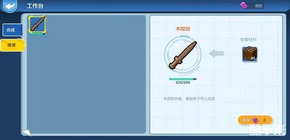 除了合成道具,工作台还有修理功能,比如武器/装备磨损可以使用少量材料恢复耐久度(简直太赞了~)。这功能真的很“生存”呐~新技能Get。