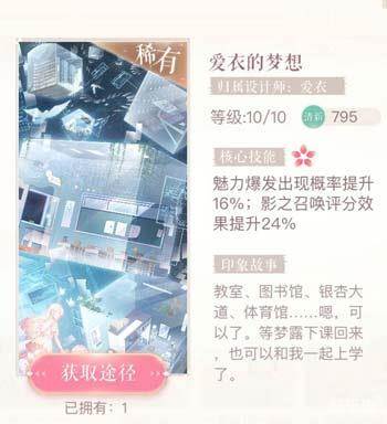 闪耀暖暖中印象经过玩家的培养升级,可以为搭配带来不少的分数提升,今天就给大家介绍下闪耀暖暖清新属性印象——爱衣的梦想。