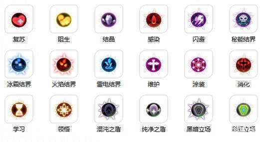 闪避、秘能结界、冰霜结界、火焰结界、雷电结界