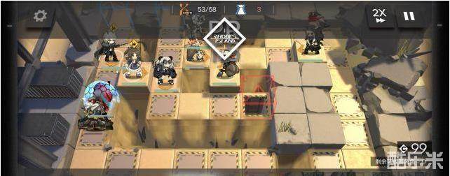这里可以看到左边的近卫和盾要扛的怪还是蛮多的,所以后面那个最好是不要放单挑剑圣……除非你前面的盾是星熊,清怪速度飞快(但我没有)