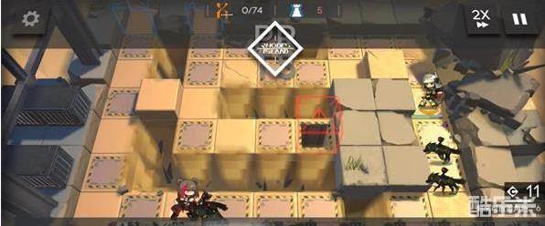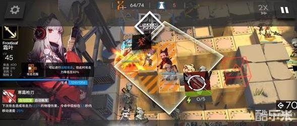 2、然后霜叶+一个肉顶住中路,(霜叶一定朝左),显然这个是不够的 中下路之间的高台给一个aoe的术士,就三星那个就够。霜叶前面那个也可以选个先锋角色,偶尔让他死一死,因为秒人还是靠术士。