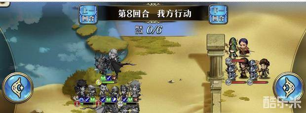 6-9回合,我方全体往右下撤退,避开敌人射程,等待技能CD。