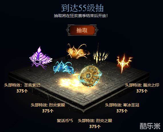 达到55级——抽取375个头部特效:圣言紫记、烈炎紫眼、烈炎之眼、寒冰圣冠、凰炎之印(永久)