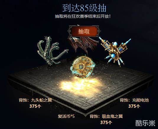 达到85级——抽取375个背饰:九头蛇之翼、吸血鬼之翼、充能电池(永久)