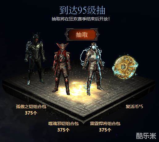 达到95级——抽取375个时装组合包:孤独之铠、噬魂邪铠、雷霆悍将(永久)
