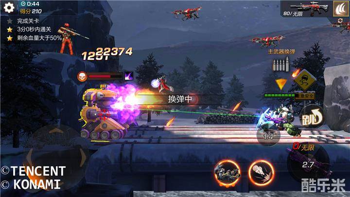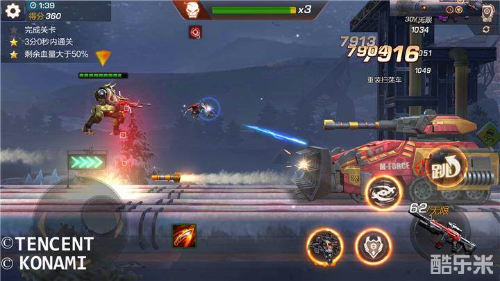 针对强悍Boss,提升残血量,才是第一要素 在关卡中,守关Boss是第18章初期的突破难点。Boss是闻名遐迩的坦克车,首先,它拥有能够穿屏的火箭攻击,并且可以覆盖上中下三层空间。指挥使用跳跃的方式,躲避底层火箭弹,采用蹲位姿势,躲避中层火箭弹。其次,它还可以借助前方巨大的推铲,实施强力的近身攻击,稍有不慎指挥官可遭受30%以上的损血。指挥官使用护盾加快速后退的方式躲避坦克的近身攻击。最后,坦克还有大威力的炮弹攻击,追踪性质的炮弹,让指挥官逃生难度极大。面对这种攻击,指挥官要各种技能全开,并可用超武机器人帕克,提升指挥官的回血量。如果击友损血幅度超过30%,那么不妨通过直接牺牲来提升指挥官的血量。