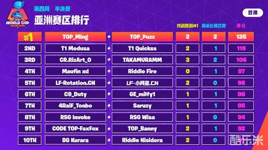 堡垒之夜世界杯第四周第一日比赛:TOP战队再出战神,小阿星欲与争锋