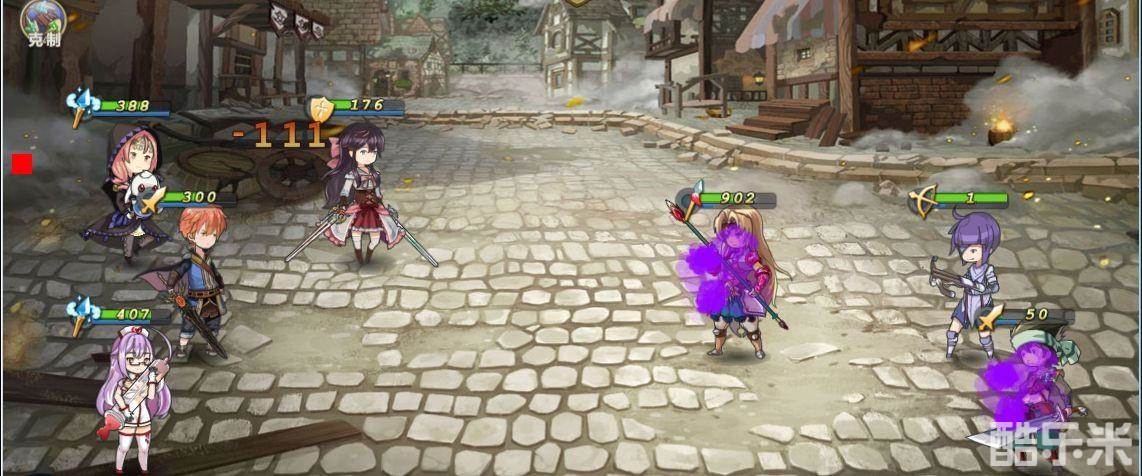 4. 后排的魔剑和魔法师技能都需要蓄力,且都是范围aoe伤害不低,但我方能够攻击到单位太少,因此需要用于吉的毒来慢慢损耗他们的血量。