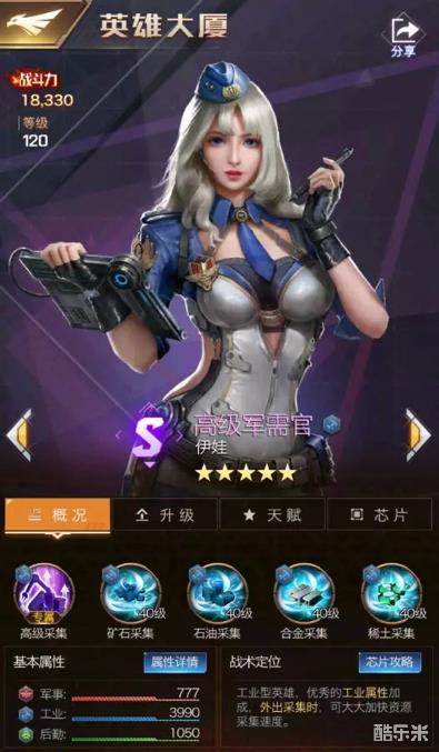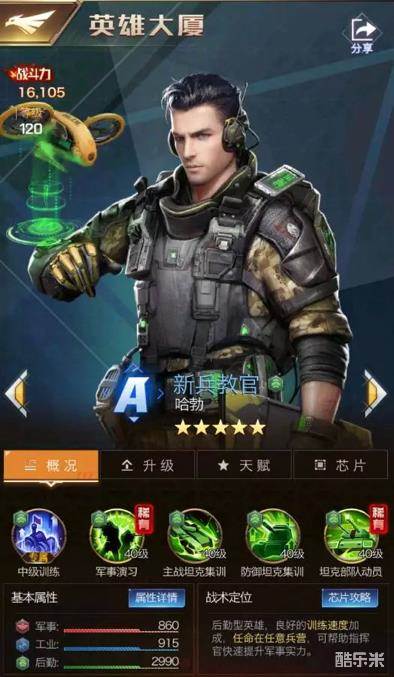 后勤类英雄有着明显的对比,零天赋SS级和满天赋S级,他们的训练速度几乎完全一样,但打造成本S级英雄却是SS级英雄的2.5倍以内,而A级英雄依靠战区奖励进行打造,用于过度或用于副主力兵种也可以。(S级后勤训练类英雄目前仅有两个,所以不是常用的兵营,可以考虑使用A级英雄)