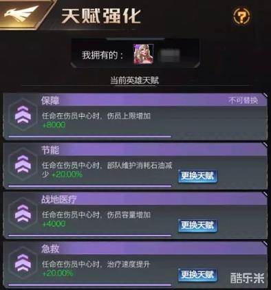 天赋一(不可替换天赋--S级保障):伤兵上限+8000