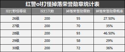 经过多次测试,红叔发现,攻打不同等级的野外敌军胜利后掉落荣誉勋章的概率虽略有不同,但整体爆率平衡在35%左右。