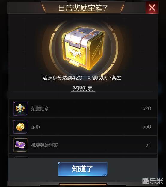 首先通过完成每日任务中的大世界探索、社交也强大、建设与发展、军力大竞赛四大类任务获得活跃积分,当活跃积分达到420后,可领取日常奖励宝箱7,内含50个金币。其中社交也强大的任务最易完成,完成后即可获得85分。