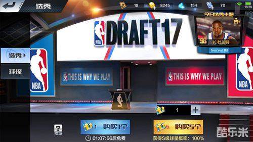 在选秀的时候,玩家需要花费选秀卡才可以进行选秀,也就是游戏中的一种货币,分为一次选秀和5次选秀,这里玩家建议大家一次性购买5个,这样获得s级球星的概率就是百分百,每天还有2次的机会可以免费抽取。