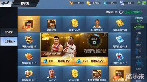 玩家也可以变成球探,直接在游戏中进行抽取了,这里就是一个花费钻石,随机抽取球星的地方,500钻石可以购买1个,2500钻石可以购买5个,而且在这里,玩家有一定的机会可以抽取到姚明、安德森和哈登,都是一些比较不错的球星,玩家们千万不要浪费这里的机会,玩家们每天都可以在这里进行抽取,也就是需要花费钻石,钻石也是比较容易可以拿到的。