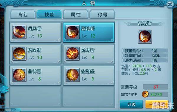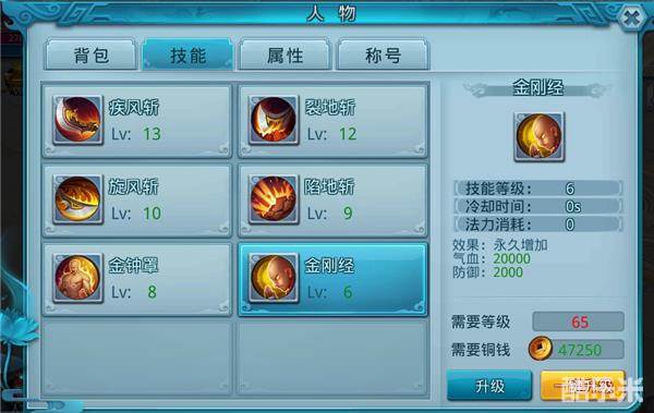 技能描述:被动技能,永久增加人物气血、防御属性。