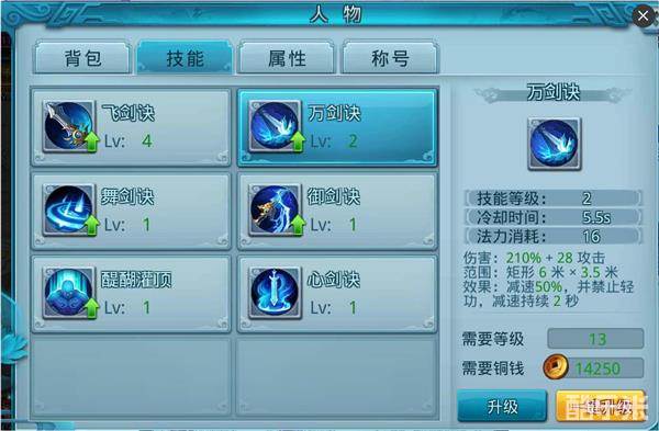 技能描述:对矩形6米X3.5米造成伤害,50%概率会触发减速效果并禁止轻功,减速持续2秒。