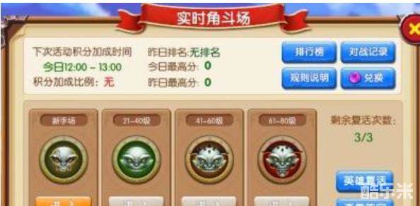 9.每日在特定时间段内进行实时角斗场游戏将获得一定的积分加成比例。
