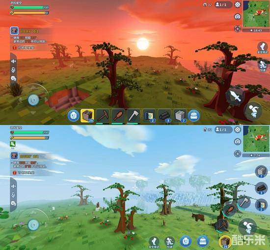 作为沙盒创造的核心玩法之一,本作中生存模式在游戏性上的表现也格外亮眼。在游戏世界里,视线所及处的各种物体,均是不可或缺的资源。并且与现实世界的情况类似,斧头、锄头对不同资源的收集效率也不尽相同。