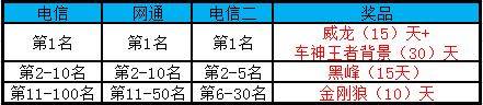 各个大区单赛季助威积分达到2700分的车手都将会获得额外的奖励,极品A车闪电龙15天,各位车手再接再厉!