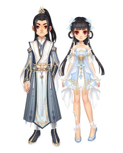 豪气的古风套装来啦!穿上此套装,圆你武侠梦。男生的浅灰色套装处处透露着高冷,腰间的莲花装饰彰显着高洁的品格,就像武林中大名鼎鼎武功高强的神秘大侠;女生淡蓝色的短裙可爱无比,纯洁的蝴蝶点缀在发饰与鞋子上,更显天真烂漫之态,就像是娇俏美丽的邻家萝莉。