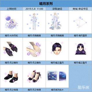 你像风,像星月落人间!2019年5月8日11:00起,全新的系列暗月主题宝箱“暗月蜜约礼盒”将在炫舞商城中上架,礼盒内还为大家准备了穿梭年轮礼盒、绯霞璃绮晶体、弹珠宝盒、经验卡等其它热门道具哦!
