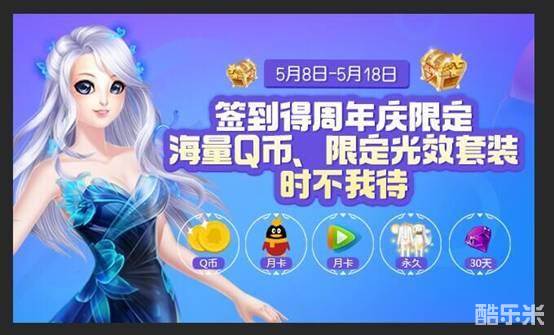 签到就得周年庆限定!2019年5月8日—5月18日,签到得周年庆限定,海量Q币,限定光效套装,时不我待!