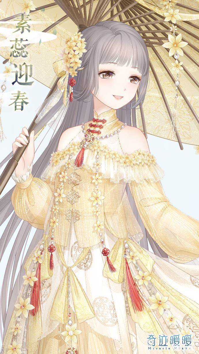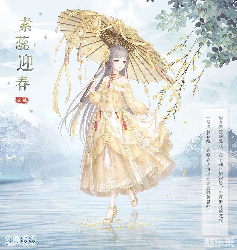 【素蕊迎春】含正常姿势与特殊姿势,可移动摆件“春风剪蕊”、“暖金处处”。通过活动还可获取可移动摆件伞“沾衣花雨”,海报展示妆容为“温热回忆”,可通过设计图制作获得。