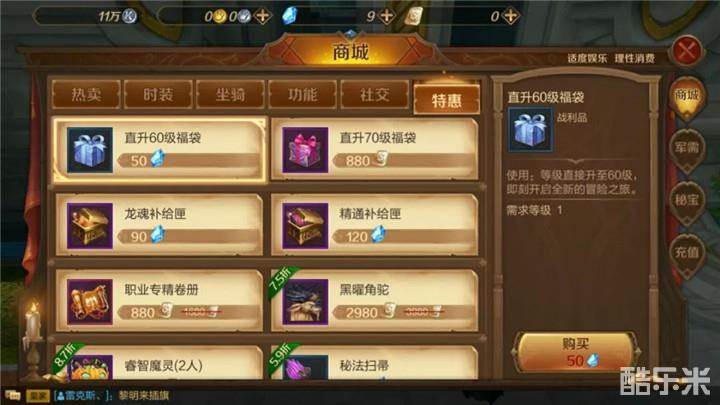 完成新手指引即可获得直升60级礼包,商城更有全新70级直升礼包震撼上线,极速升级助力冒险旅程。抛却复杂化繁为简,购买即可获得畅快升级体验,完美贴合版本节奏。