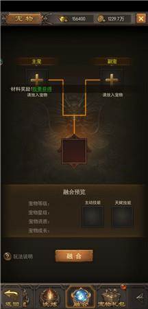 宠物融合也是一个提高宠物能力的方式,玩家可以选择物作为主宠物,选择另一只宠物作为副宠物,把两只宠物进行融合,就能够获得一只更好的宠物。这只宠物拥有所融合的两只宠物的最大星级,最大资质,最大值至最大成长值等属性。