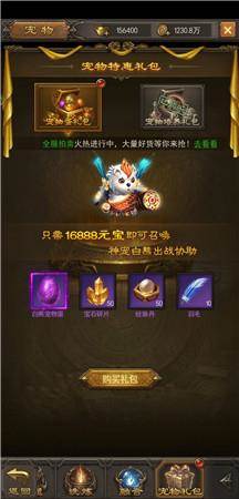 此外,如何快速获得高级宠物,快人一步呢?玩家可以购买宠物熊礼包,获得一只实力强悍的白熊,它拥有眩晕技能,是性价比极高的宠物。玩家还可以购买宠物喂养礼包,里面包含着宠物饲料,以及洗练药水等稀有道具。
