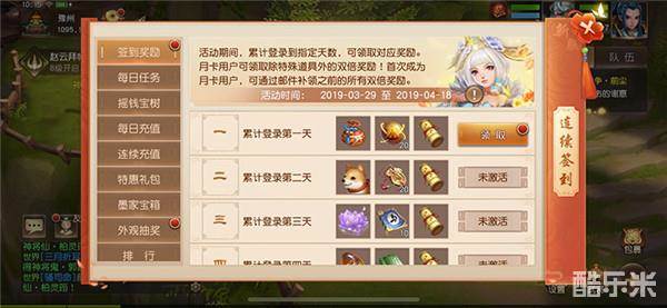 新服玩家每日登录累计签到,即可获得步步生莲(10天)、跟宠旺财、木牛流马等高级奖励