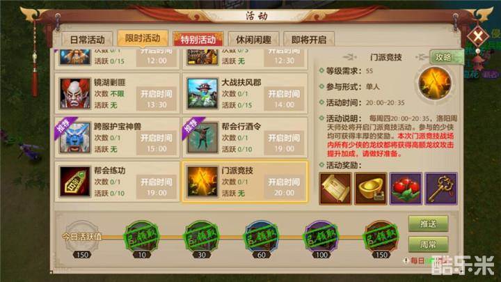 活动奖励的优化 本次优化不但提升了门派竞技排行奖励价值,而且把排行榜第4、第5、第6的奖励从原来的第4至第10名奖励中拆分出来,且奖励价值均高于原有奖励。少侠一定要加油哦,丰厚的奖励等你收入囊中!