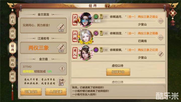 这就是自动同意亲密关系申请入队/团队、邀请组队/团队直接申请功能的介绍,供少侠参考。夫妻间或者结拜之间都改成相互近似的名字会很温馨很霸气的。少侠,你和结拜的名字统一了吗,是不是也霸气十足呢!