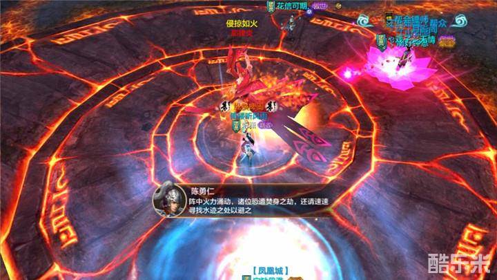 第三关跑水圈,使用凌神式追杀boss 第三关需要走位,跑水圈,当水圈出现后,要及时跑到水圈中。火牛出现后,要及时躲避,如果被火牛选中为攻击目标,要远离队友。没有成为火牛的目标,就使用凌神式快速追杀boss。