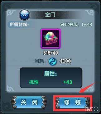 | 开启,但经脉材料不足;点击可获得相应的获取途径。 | |