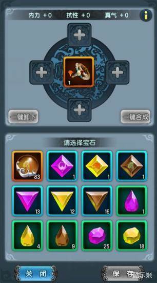 在装备界面,玩家点击镶嵌,即可弹出宝石面板,对装备上的宝石进行修改。