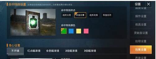 【特效设置】打开设置按钮,选择效果设置,在左上方我们能看见命中特效设置,命中特效有四种样式和颜色供玩家选择。