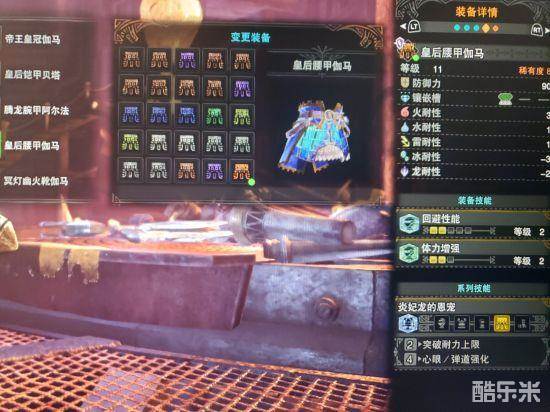 相比一般极限配装,多了皇后二回性三体力二,会心率配帝王客制会心在90-95,感觉输出差了不多,但是多出的三条词缀简直就是新手福音啊。