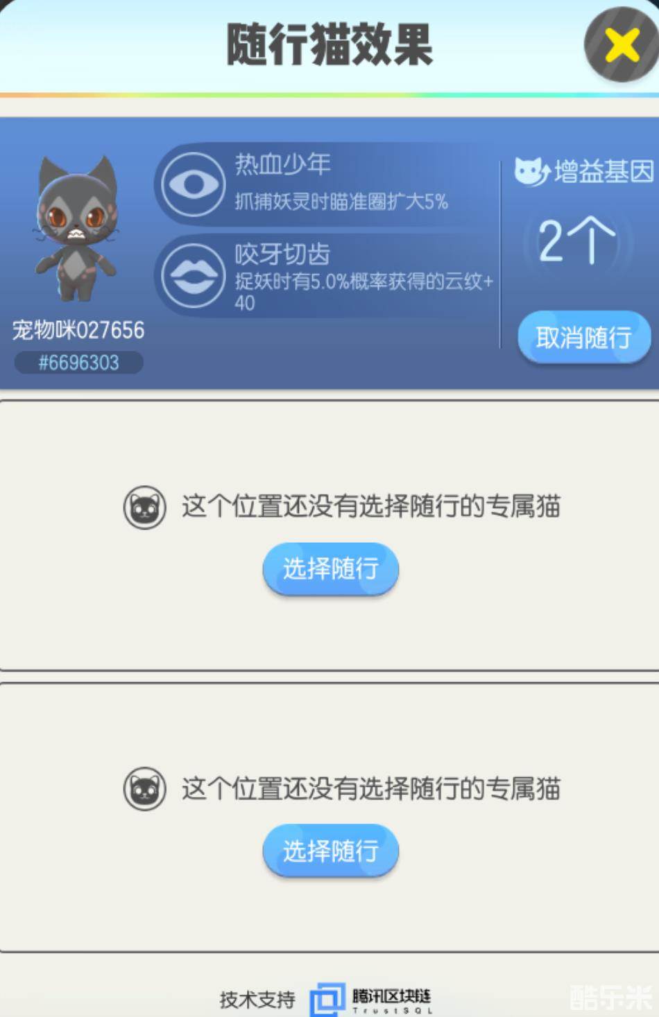 通过繁殖获取的下一代猫咪,同样外形也是不一样的,因为每一只猫都携带着不同的基因,这也就是直接影响到猫的外貌;一些普通基因会遗传到下一代,有机率携带一些特殊基因,达到增益效果。对于某些能达到增益效果的专属猫咪,我们还能设置随行,这样就可以把增益效果发挥,协助我们去捉妖,最多可以随行三个猫咪哦~