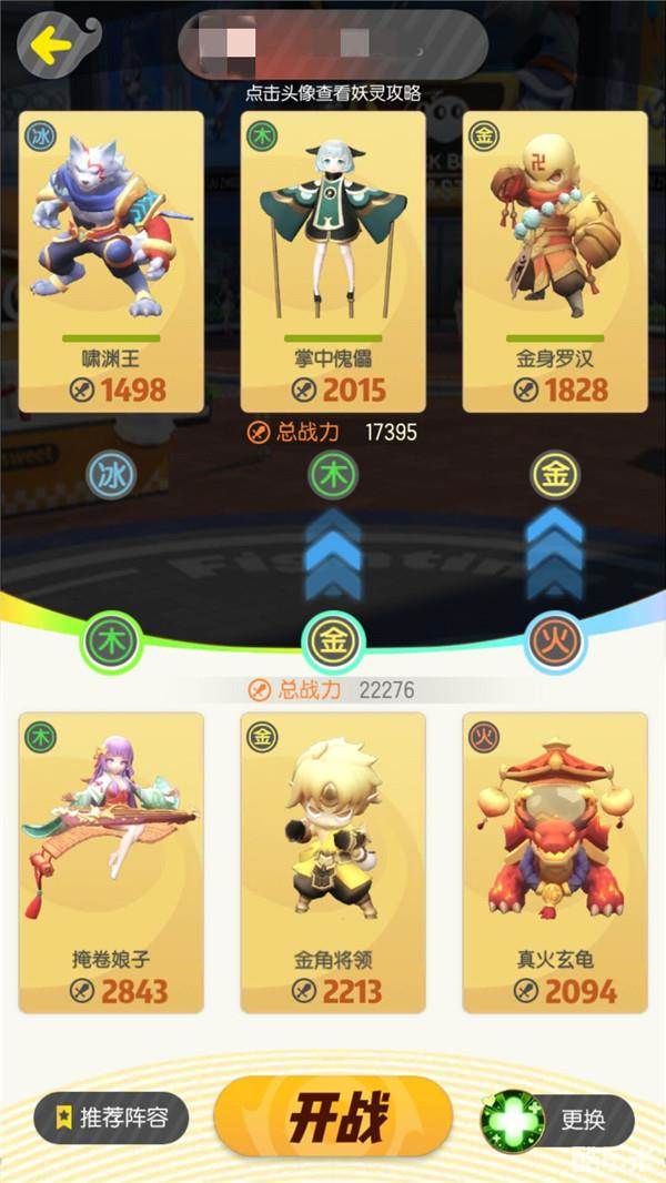 擂台战中最常用的组合,辅助妖灵放在首发位置后换下场提供回血buff,肉盾妖灵进行抗伤害和消耗,敌方妖灵被消耗的差不多后,输出妖灵提供输出。只要战力等级够,加上属性克制,这套组合用来攻打擂台十分好用。