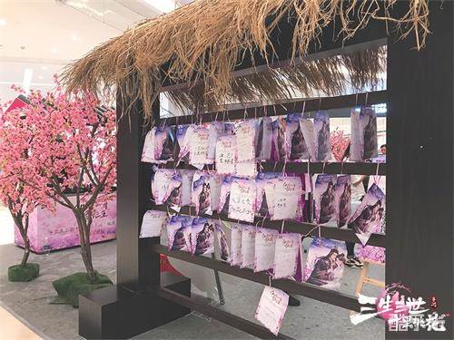 除此之外,“桃花节”各个环节都好不热闹!在盛典中,包括白浅、夜华、凤九、东华帝君在内的游戏伙伴均已成功“穿越”至现场还原的“十里桃林”,仙友每日都能与他们尽情互动,合影、玩游戏等。在“十里桃林”桃花树下的三生石旁,仙友们还能领取“祈愿牌”,写上自己的祝福与心愿,在一众上神的帮助下用“红绳”栓在“桃花树”上,祈福姻缘顺利、家人健康、事业进步。