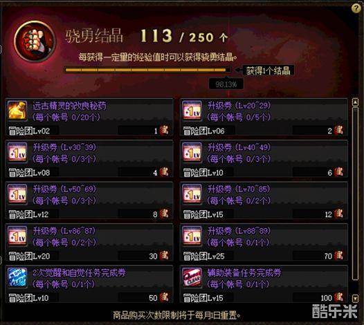 在冒险团中,我们可以用骁勇结晶购买大量升级券,这些升级券可以让我们练级道路上更加轻松,而现在的我们,可以多多刷图,积攒骁勇结晶,等到新转职开放后,以便让我们拥有足够的骁勇结晶来购买冒险团中的升级券。