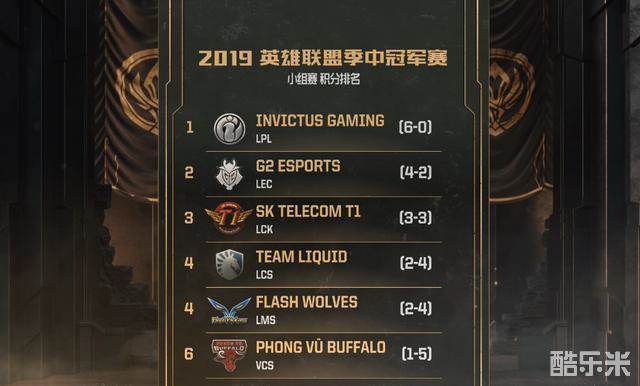 从如今的积分形式来看,排在第一名的当然是我们LPL赛区的IG战队,以6-0未尝一败的战绩领跑小组赛第一的位置;而在IG战队之后的队伍则分别是来自LEC赛区的G2、LCK赛区的SKT、LCS赛区的TL、LMS赛区的FW以及东道主越南赛区的PVB了。而从目前的排名以及积分形式来看,IG战队只要在最后四场比赛中不全输的话基本上已经锁定了出线名额。