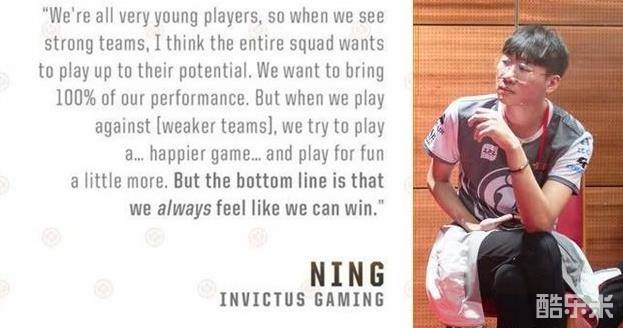 当我问ning他如何看待队伍在面对PVB和SKT打出的两种不同风格时,他说:“我们都是非常年轻的选手,所以当我们看到强大的队伍时,我认为整个队伍都想发挥出自己的潜力,我们打出100%的表现。但当我们与(实力较弱的队伍)比赛时,我们会努力打出一场……更快乐的比赛……更多地为乐趣而战。但是最重要的是,我们总是觉得我们能赢。”
