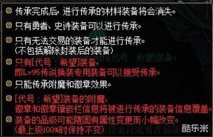 我们可以将异界与史诗装备上的附魔与徽章传承到代号:希望装备上,传承后异界与史诗装备会消失,近来关于新换装是否需要开孔才能继承旧换装白金徽章之类的讨论越来越多,有不少小伙伴表示很困扰,不过这一点在助手里也有相关文章做了介绍,关于新换装没打孔,老换装打了白金徽章,无法继承的谣言也不攻自破了。