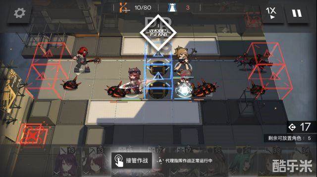 最后一波推王抗到残换重装2(其实这时候费用充裕,抗死也没事了),左边红豆开技能快速处理掉左下路之后撤退,减轻右上压力,t练度不够怕倒t可以下第三个单奶,也可以下群法2。