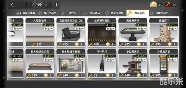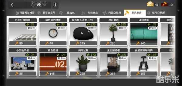 ③在宿舍界面的装扮商店和主页的采购中心能够买到的家具种类并不完全一致。采购中心里面的一些装饰品比较优质,建议有锤子以后去转转。